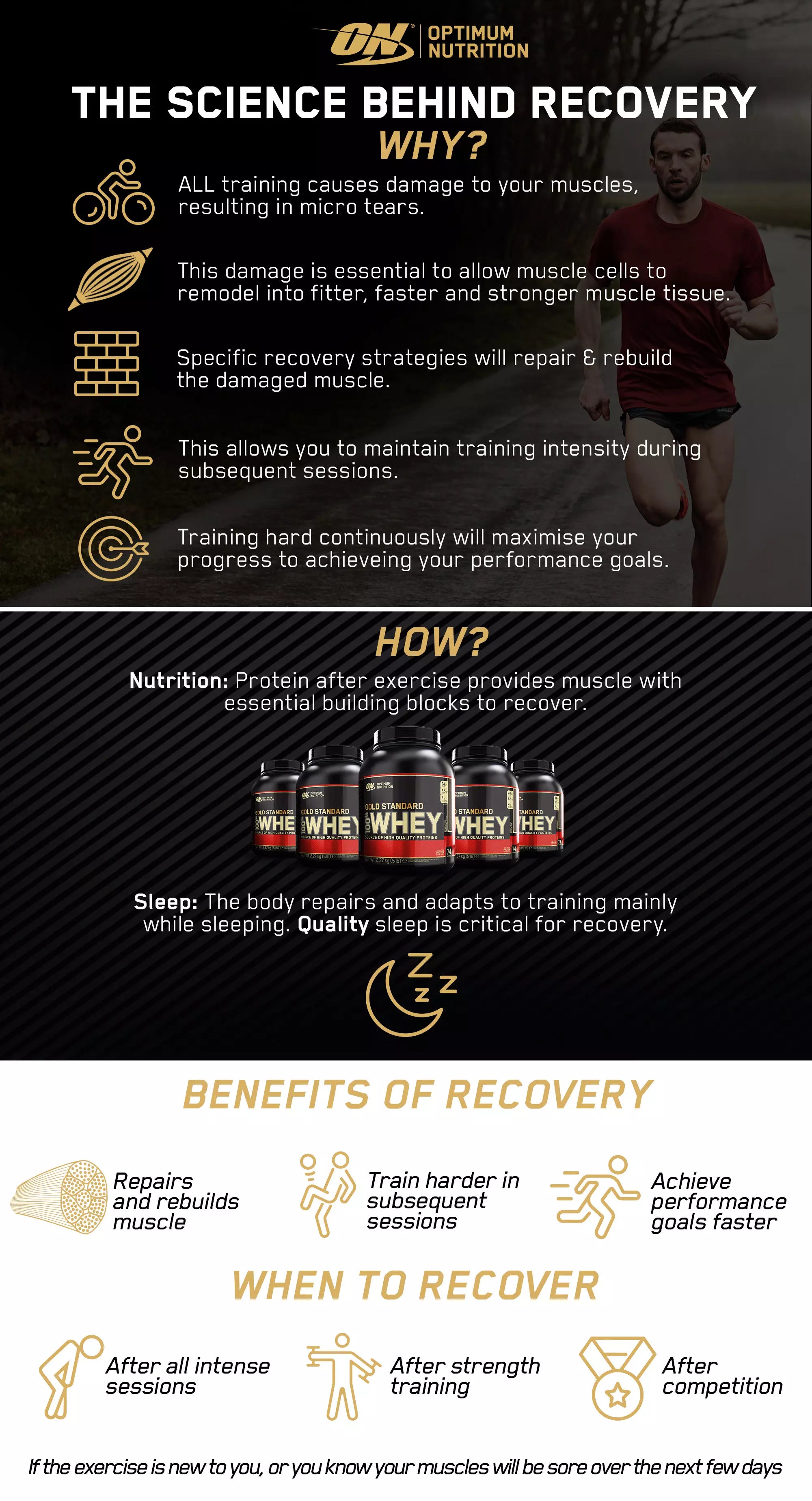 Recovery is the Ultimate Preparation. If you are in training for an Endurance event why not try Optimum Nutrition’s Gold Standard 100% Whey and Gold Standard BCAA Train + Sustain.